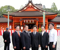 また、会議直前には、参加者全員が地元の富士山本宮浅間大社の本殿において正式参拝し、ご祈祷を受けた。