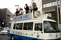 また、直前には合同で街頭遊説活動を開催し、栄の繁華街においてそれぞれに熱い思いを訴えた。