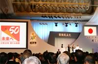 - 本年の大会は立党50年の節目として盛大に行われた。