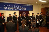 - 全国の青年部長・青年局長が出席し党本部において開催された。同大会では各県連の重点活動項目の進捗状況が報告され、その後、武部勤幹事長との党運営に関する意見交換や事前に取りまとめた少子化対策の政策提言を与謝野馨政調会長へ提出した。